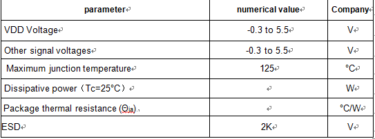 Remarks: exceeding the above limit parameters may cause permanent damage to the device. These are only stress limits, and the device is not recommended to operate under these limits or any other conditions exceeding the following "recommended operating conditions". Working under the above limit parameters for a long time may affect the reliability of the device.