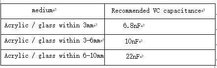 3. When the difference of dielectric material and thickness is large, the touch sensitivity can be adjusted by adjusting the CVC capacitance between VC and GND. The recommended value range is 1NF ~ 47nF, and the typical value is 10nf. Within the range, the greater the capacitance value, the higher the sensitivity, and the smaller the capacitance value, the lower the sensitivity. Smaller temperature coefficient and more stable capacitor must be ed; For example, X7R and NPO, it is recommended to NPO capacitor to reduce the sensitivity affected by temperature change.