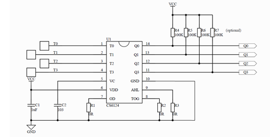 Cs6124 is a capacitive inductive touch detection chip, which provides 4 touch input ports and 4 direct output ports, and supports multi-point simultaneous touch and simultaneous output. The sensing effect is stable. It replaces the traditional mechanical switches and ordinary keys and is widely used in electronic products.
