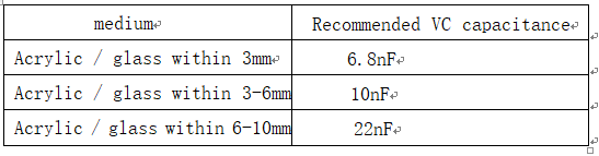 3. When the difference of dielectric material and thickness is large, the touch sensitivity can be adjusted by adjusting the CVC capacitance between VC and GND. The recommended value range is 1NF ~ 47nF, and the typical value is 10nf. Within the range, the greater the capacitance value, the higher the sensitivity, and the smaller the capacitance value, the lower the sensitivity. Smaller temperature coefficient and more stable capacitor must be ed; For example, X7R and NPO, it is recommended to NPO capacitor to reduce the sensitivity affected by temperature change.