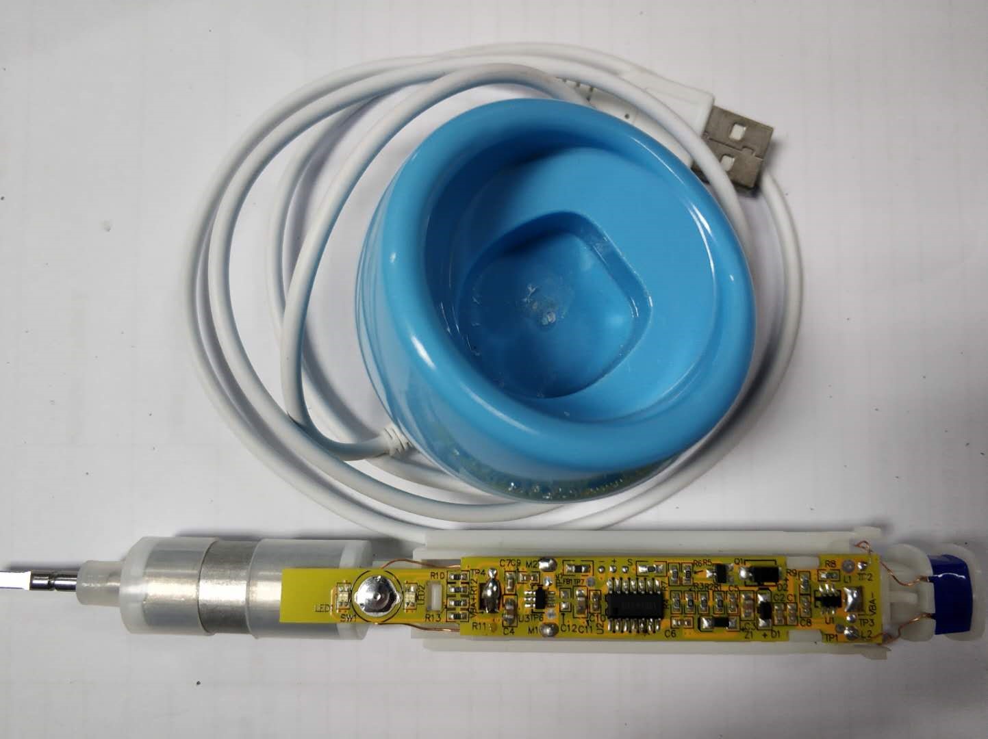 Product features: with wireless charging function, built-in lithium battery protection circuit, swing motor speed and strength control, LED red and blue two-color indicator, low power reminder, working status and mode indication, and single key control