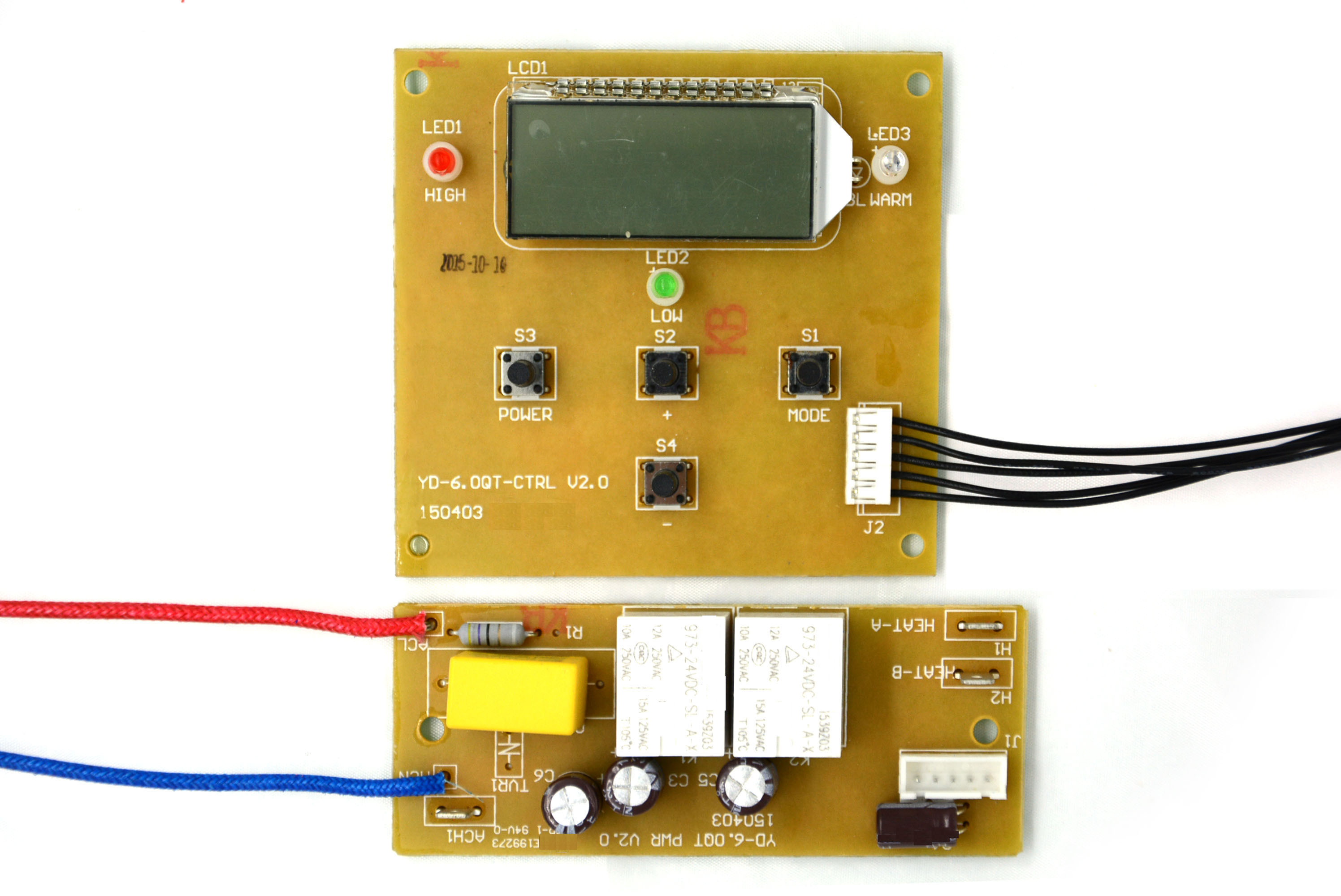LCD显示慢炖倒计时,带一个电源按键、一个模式选择按键、一个加键和一个减键,有高、低、保温三档慢炖功能。