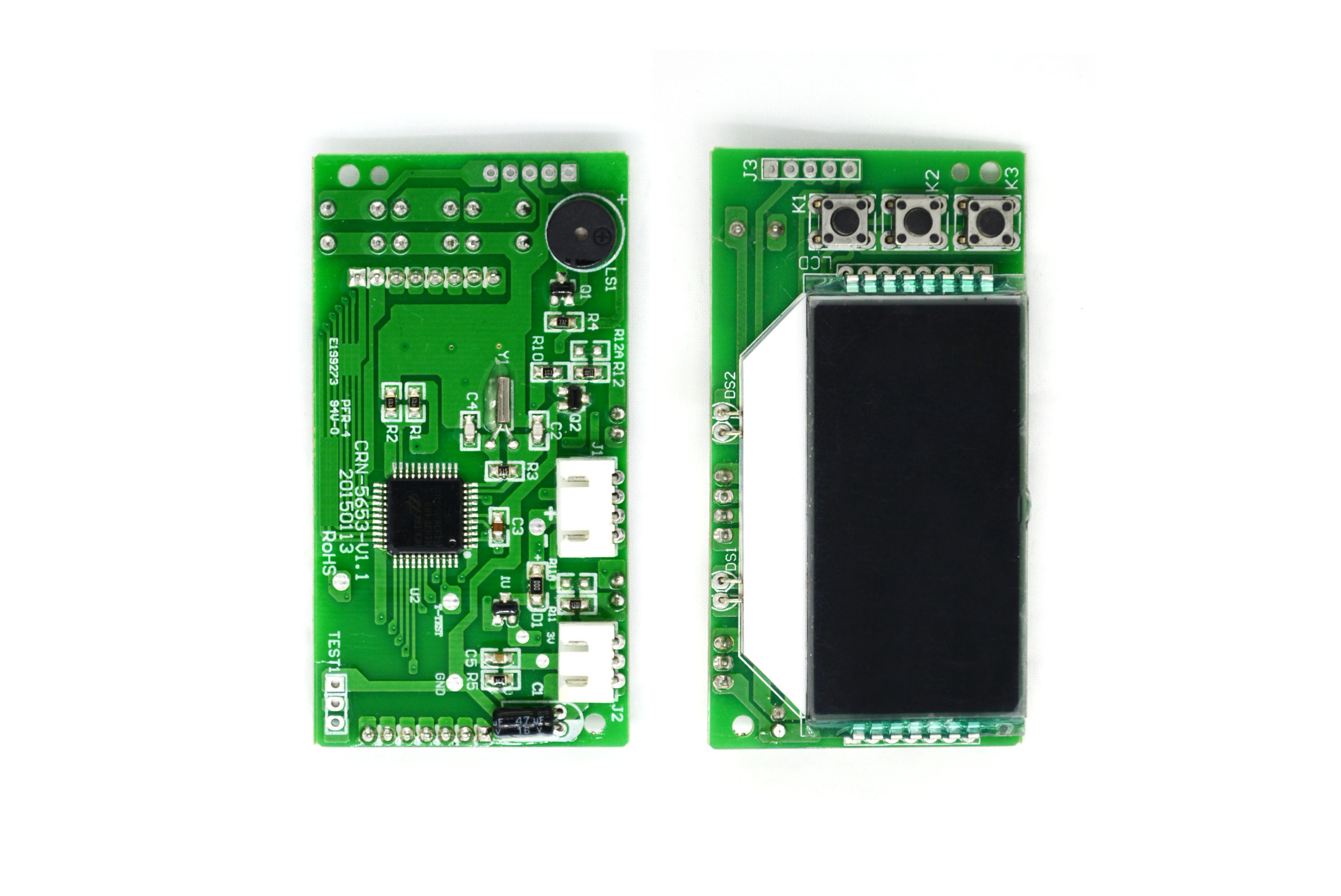 产品特点:本产品采用电子技术实现超滤机的产品运行状态显示、滤芯寿命提示等信息。采用段码 式LCD液晶屏、隐藏式机械按键;IC内部带有掉电非易失性储存器,保存关键参数,断电 不丢失。若无任何按键操作,则25秒进入睡眠状态,LCD关闭显示。LCD处于睡眠状态时, 按下任何一个按键,或检测到流量信号LCD重新点亮。 关键参数指:各级滤芯使用时间、使用流量;各级滤芯寿命的时间参数设置值、流量参数的设置值。滤芯寿命分五个等级显示,寿命到期滤芯空壳闪烁提示,在通水情况下,滤芯剩余量寿命